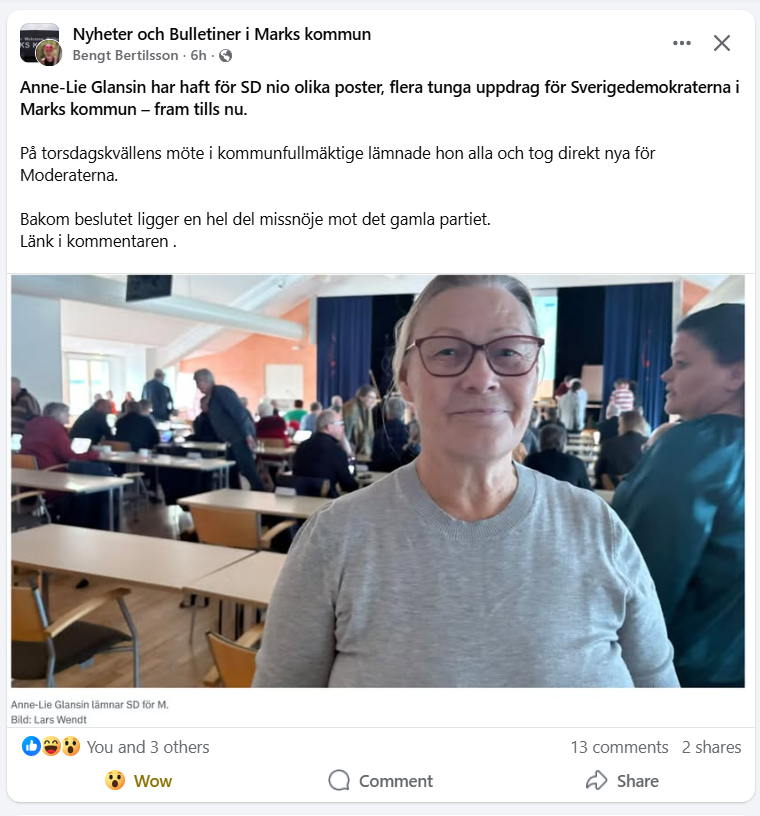 Förtroendevald politiker för Sverigedemokraterna (SD) har under samma fullmäktigemöte som hon blev entledigad från sina uppdrag för SD blivit invald för Moderaterna till nya politiskt uppdrag.