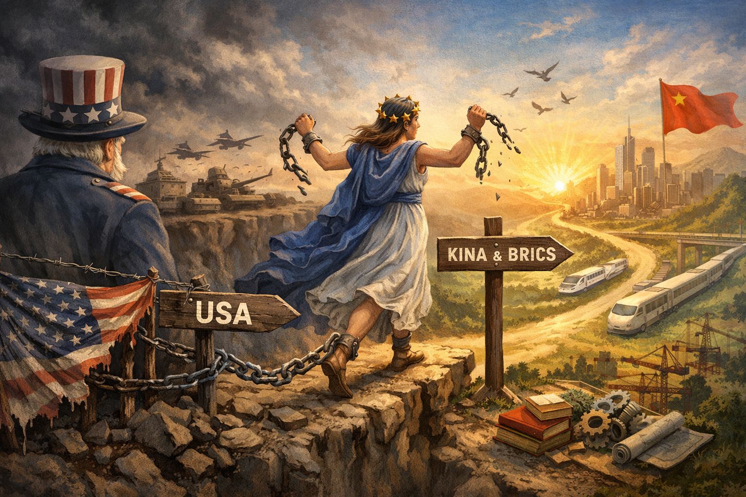 Europa har – om vi ska vara ärliga – bara en enda chans kvar att hävda sig, att undvika att sakta styckas upp geopolitisk och territoriellt. Den chansen heter suveränitet. Att gå sin egen väg. Att bygga strategiska allianser med Kina och BRICS. Att bli en verklig makt, inte genom dominans, utan genom självständighet. Att sätta hårt mot hårt och säga: hit, men inte längre.